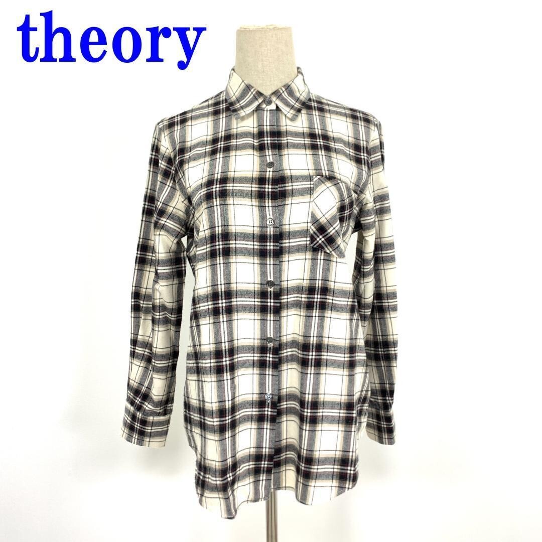 - セオリー 長袖シャツ 綿 チェック オーバーサイズtheory コットン ブラック ベージュ 黒 S C1661