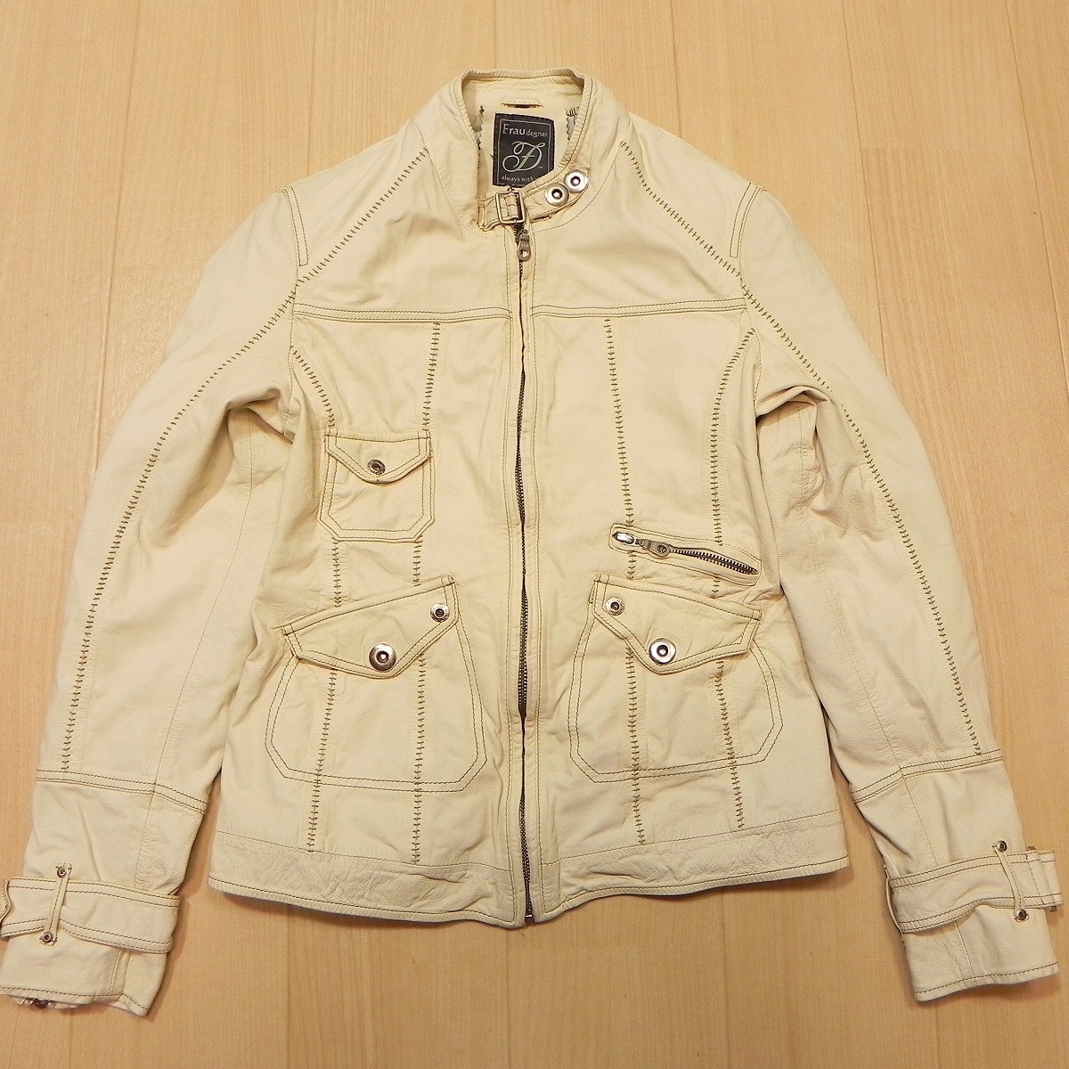 > ☆ DEGNER デグナー 羊革 レザーライダースジャケット M ジップジャケット バイカー レディース ライディングジャケット 古着 ★h