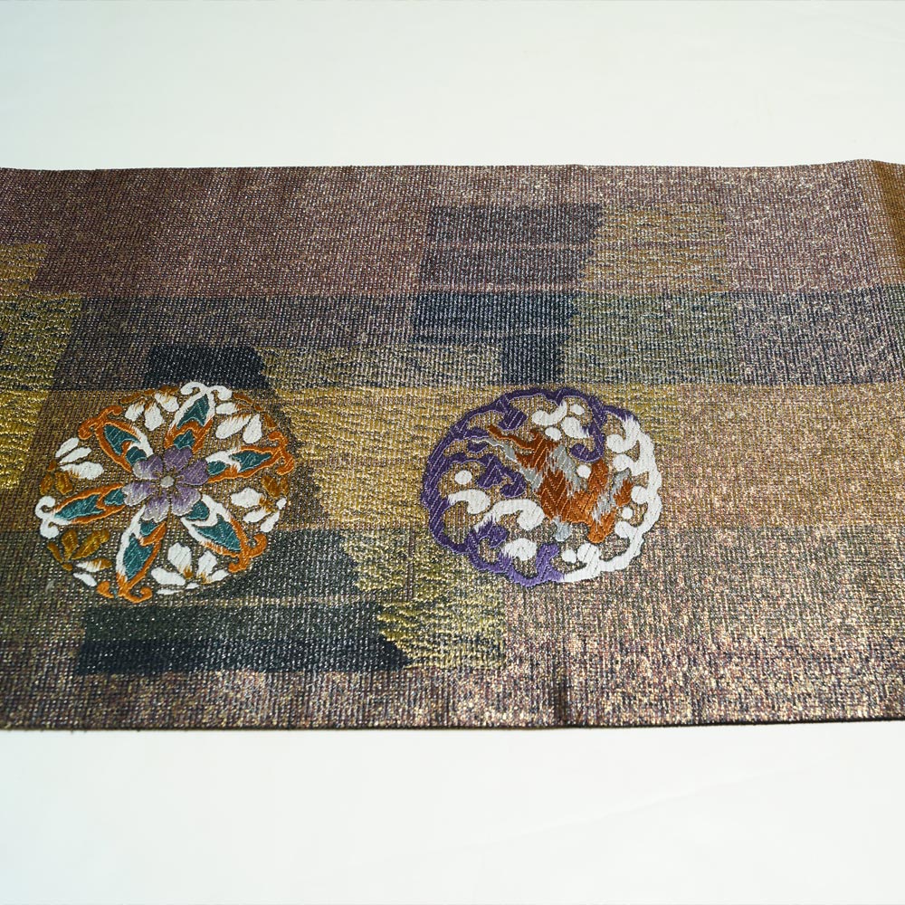 > 袋帯 唐織 伝統工芸品 源氏香に波兎・華文模様 金糸 金通し 伝統工芸士謹製 リサイクル 帯 正絹 中古 リサイクル着物 フォーマル 着物 天陽