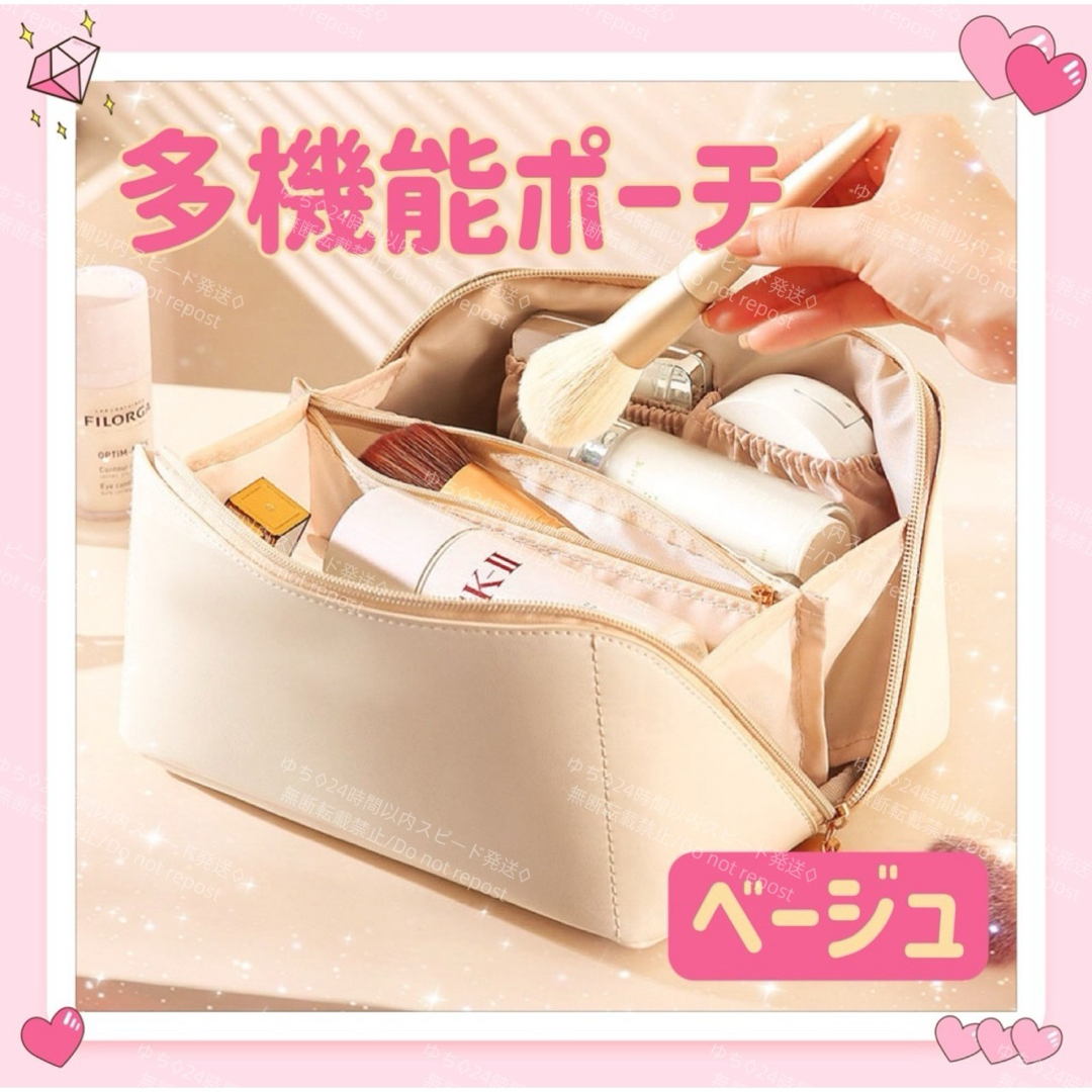 - 多機能 ポーチ 大容量 メイク 化粧 トラベル 小物入れ 可愛い シンプル ベージュ