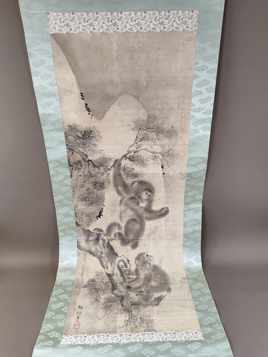 - k6 森狙仙 猿図 掛軸 肉筆 模写 時代物 古美術
