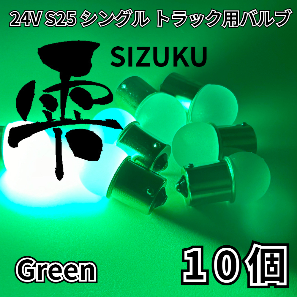 - グリーン 10個 24V トラック用品 S25 シングル BA15S 平行ピン 電球のみ マーカーランプ サイドマーカー バスマーカー 雫バルブ