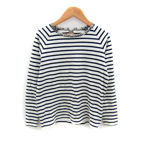 - ハリス HARRISS カットソー 長袖 ラウンドネック ボーダー柄 ラメ 36 S オフホワイト 紺 ネイビー /SY42 レディース