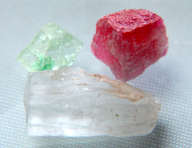 - ♪天然ピンクサファイア、アクアマリン、エメラルド三色原石詰め合わせセット 【17-25】