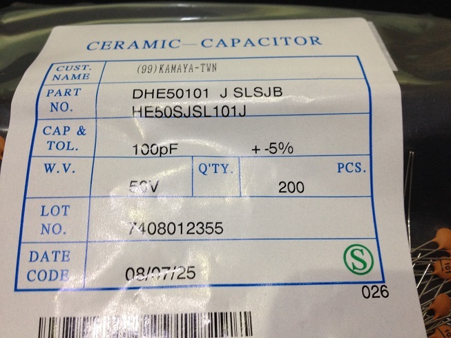 - 円板型セラミックコンデンサ HE50SJSL101J SL特性 50V 100pF 10個入