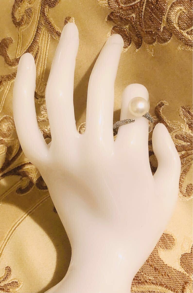 - 素敵な大粒10mm本真珠のボリューム感で楽しめます♪珍しいダイヤ入ホワイトパール指輪