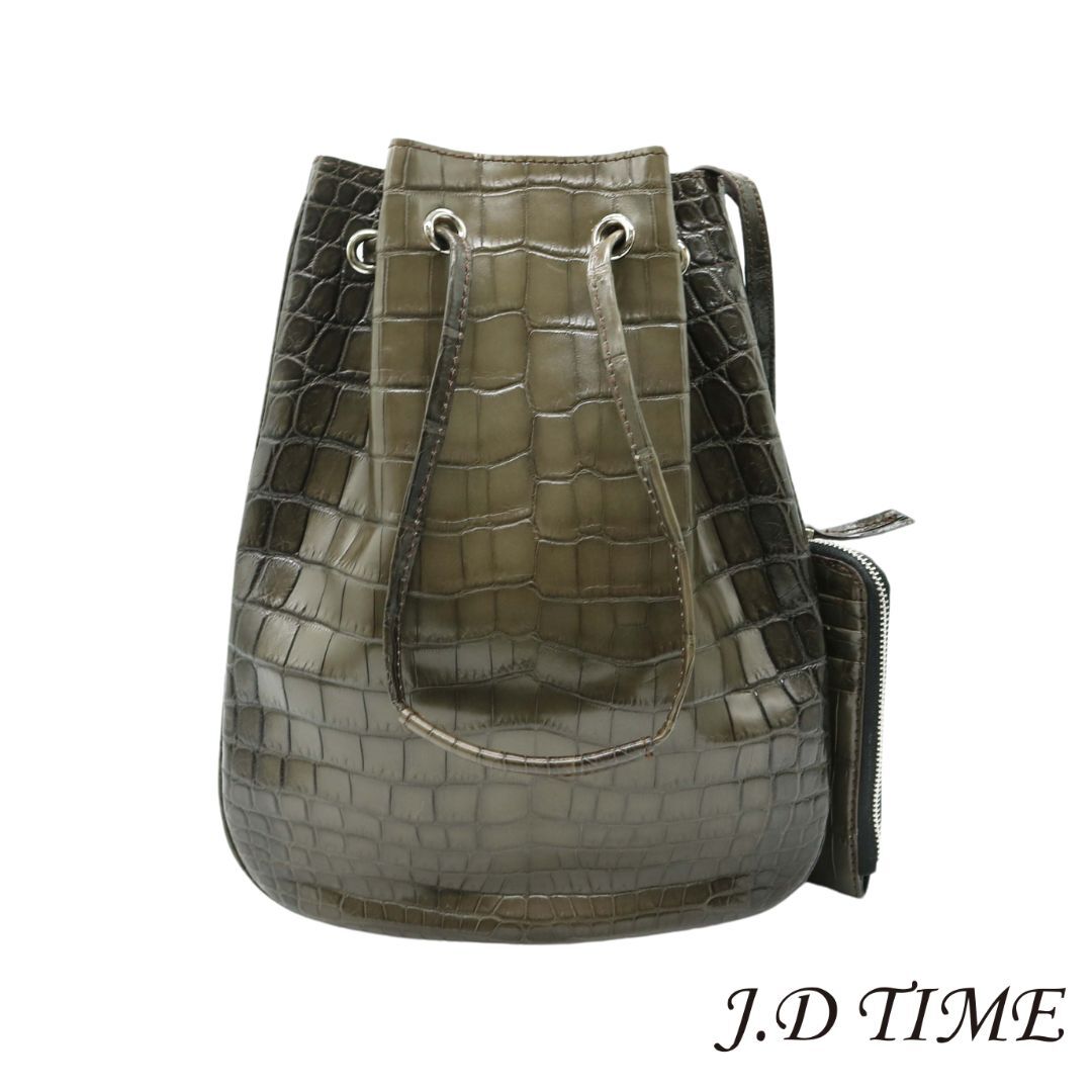- クロコダイル【オリジナル】ハンドバッグ/巾着バッグ ブラウン×イエロー【新品】(JD-KO-2920)