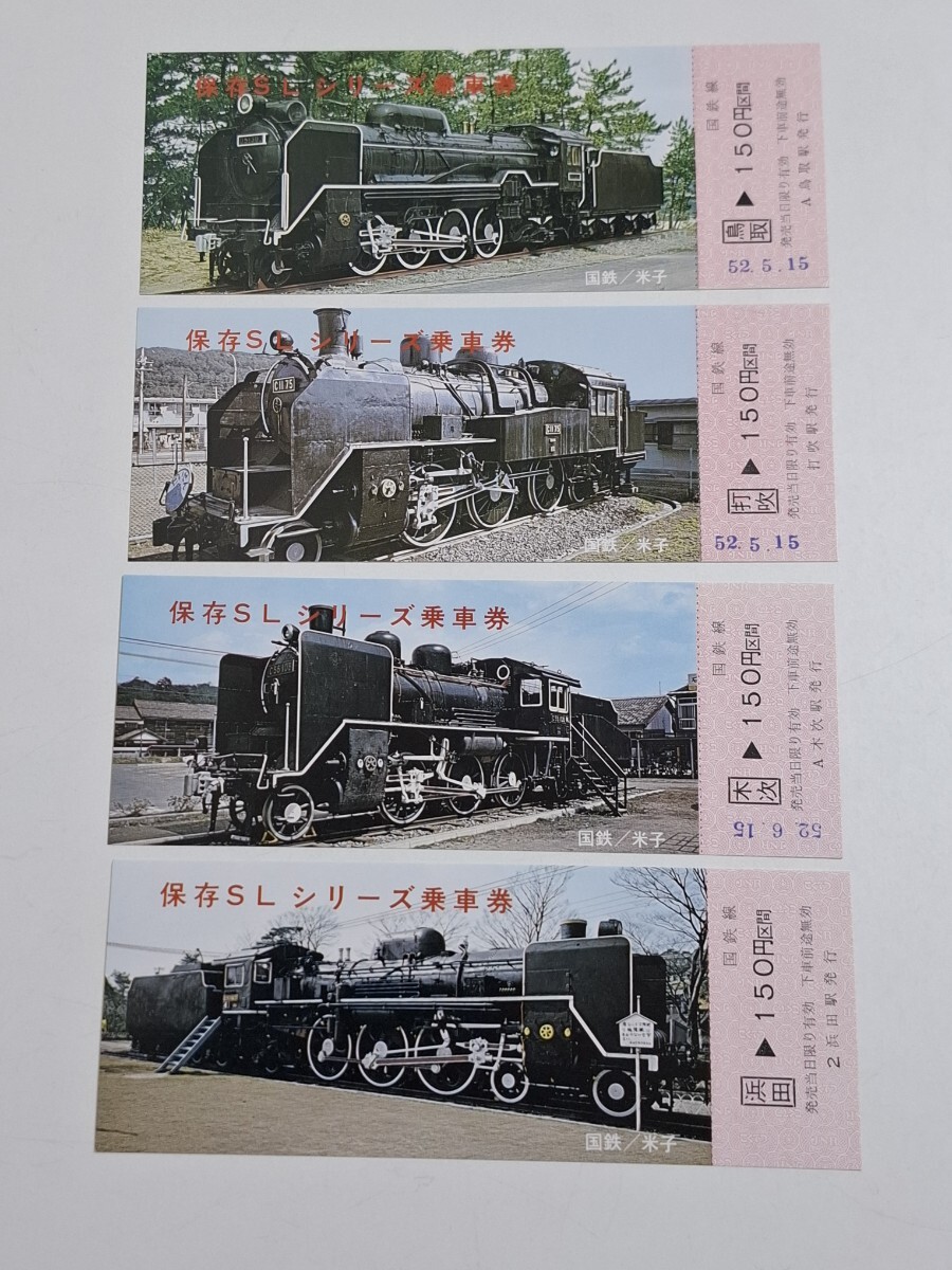 - 保存SLシリーズ乗車券 国鉄 米子鉄道管理局 昭和52年 鳥取 打吹 木次 浜田 4枚
