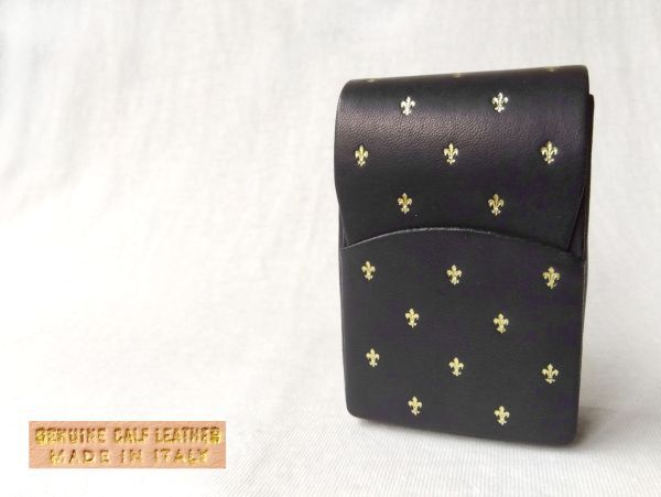 - イタリア製 レザー シガレットケース ITALY タバコケース 革製 GENUINE CALF LEATHER 煙草入れ 喫煙具 黒