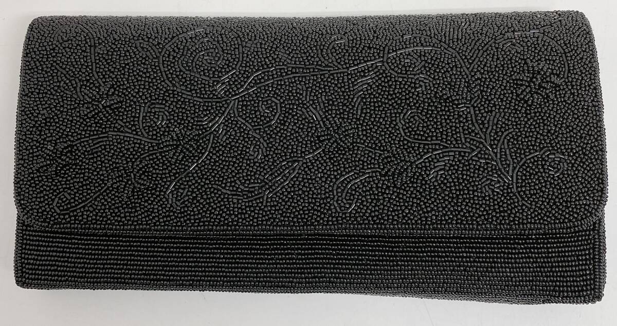 - 【ビーズハンドバッグ ブラック】セカンドバック/黒色/ヴィンテージ/財布入れ/小物/ポーチ/お出掛け/A611-481