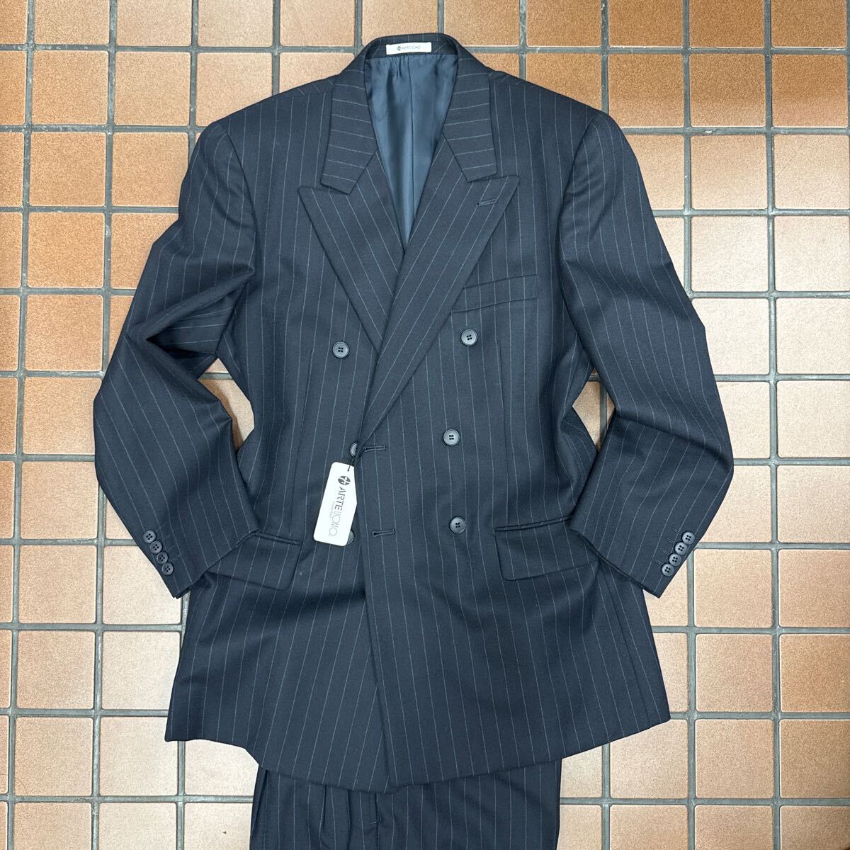 > 新品タグ付き!激安ARTE UOMO ダブルスーツセットアップ サイズL 濃紺ネイビー ペンシルストライプ ウール100% ヨーロピアンスタイル