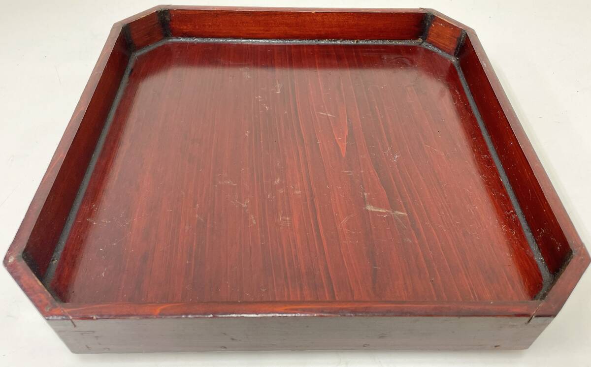 - 【漆器 お盆 トレー 伊勢山田岡本町 若井利兵衛】ビンテージ/アンティーク/木目/日用品/インテリア/A611-143