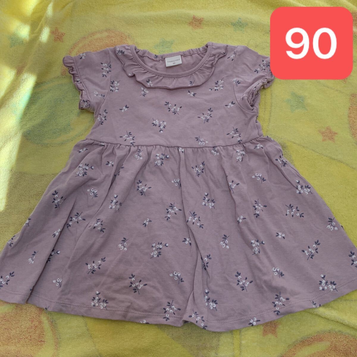 - フリル袖襟 木の実 小花柄 くすみピンク 半袖 ワンピース 90