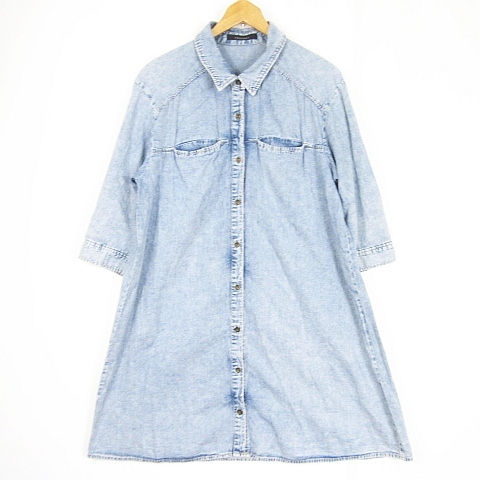 > ページボーイ PAGE BOY ダンガリーシャツ ワンピース 膝丈 七分袖 コットン M ライトブルー kz9976 レディース