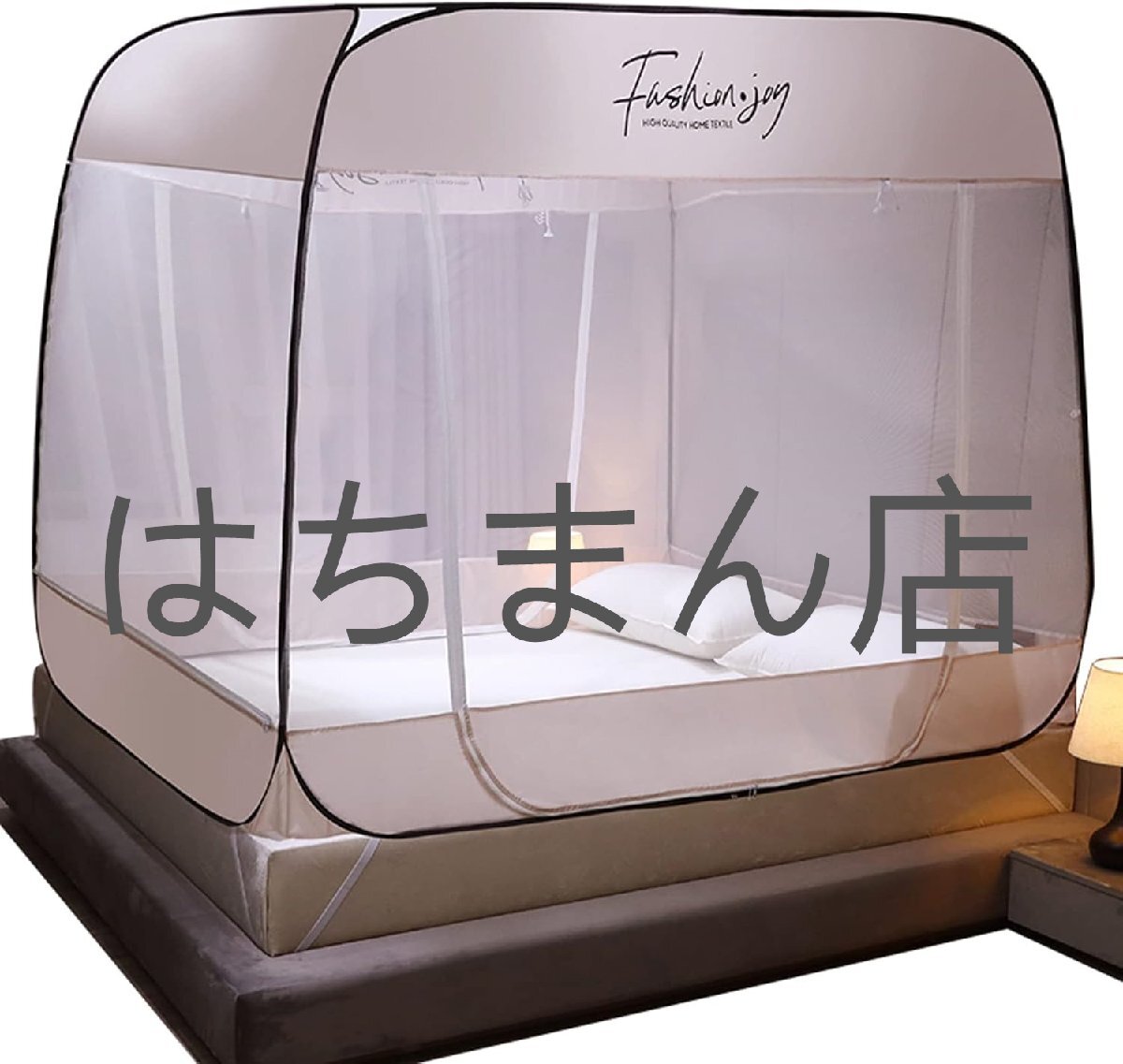 - 蚊帳 ワンタッチ 底付き シングルベッド用 ダブルベッド 3ドア設計 かや 蚊帳 ベッド用 畳 大型 収納袋付-120x195x155cm-gray