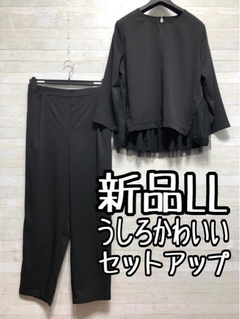 - 新品☆LL黒系♪後ろチュールきれいなブラウス&テーパードのセットアップ〇A818