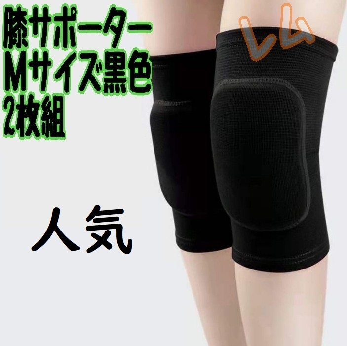 - 送料無料 Mサイズ 2個セット 黒色 ブラック 膝サポーター 男女兼用 メンズ レディース No.904 B