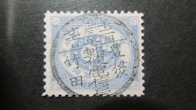 - 【小型丸一縦書印】小判5銭 33.12.27/豊後/郵便電信局/竹田