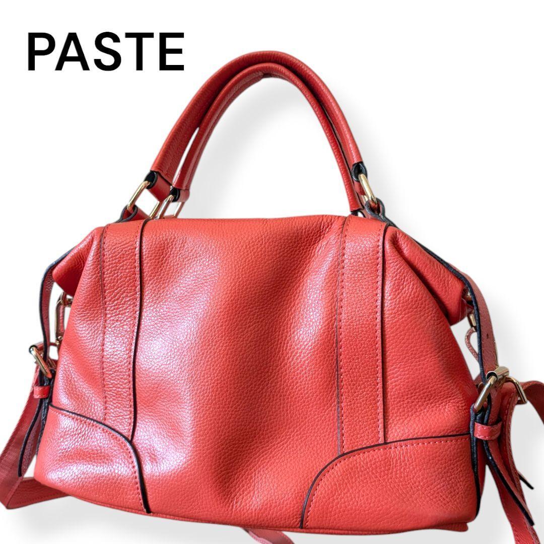 - PASTE ペースト ハンドバッグ ショルダー 2way レザー オレンジ レディース 婦人鞄 お洒落 目を引くカラーが良い