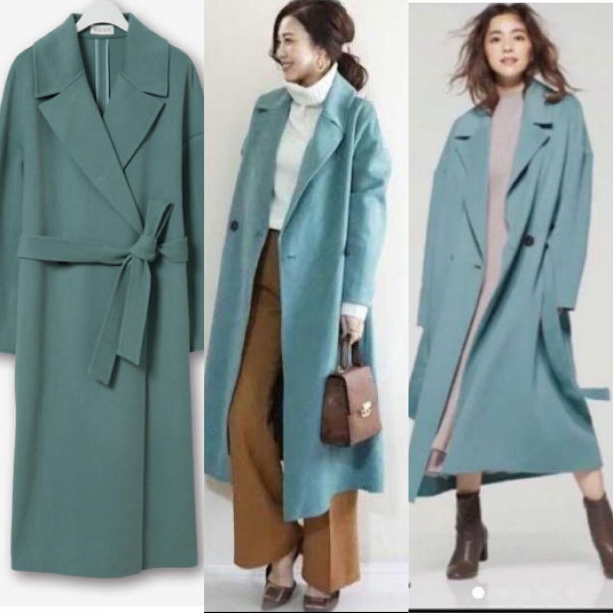 - 定価22,000円 PLST ミントグリーン ウールナイロンリバーコートM美品 ダブル/チェスター/ロング丈