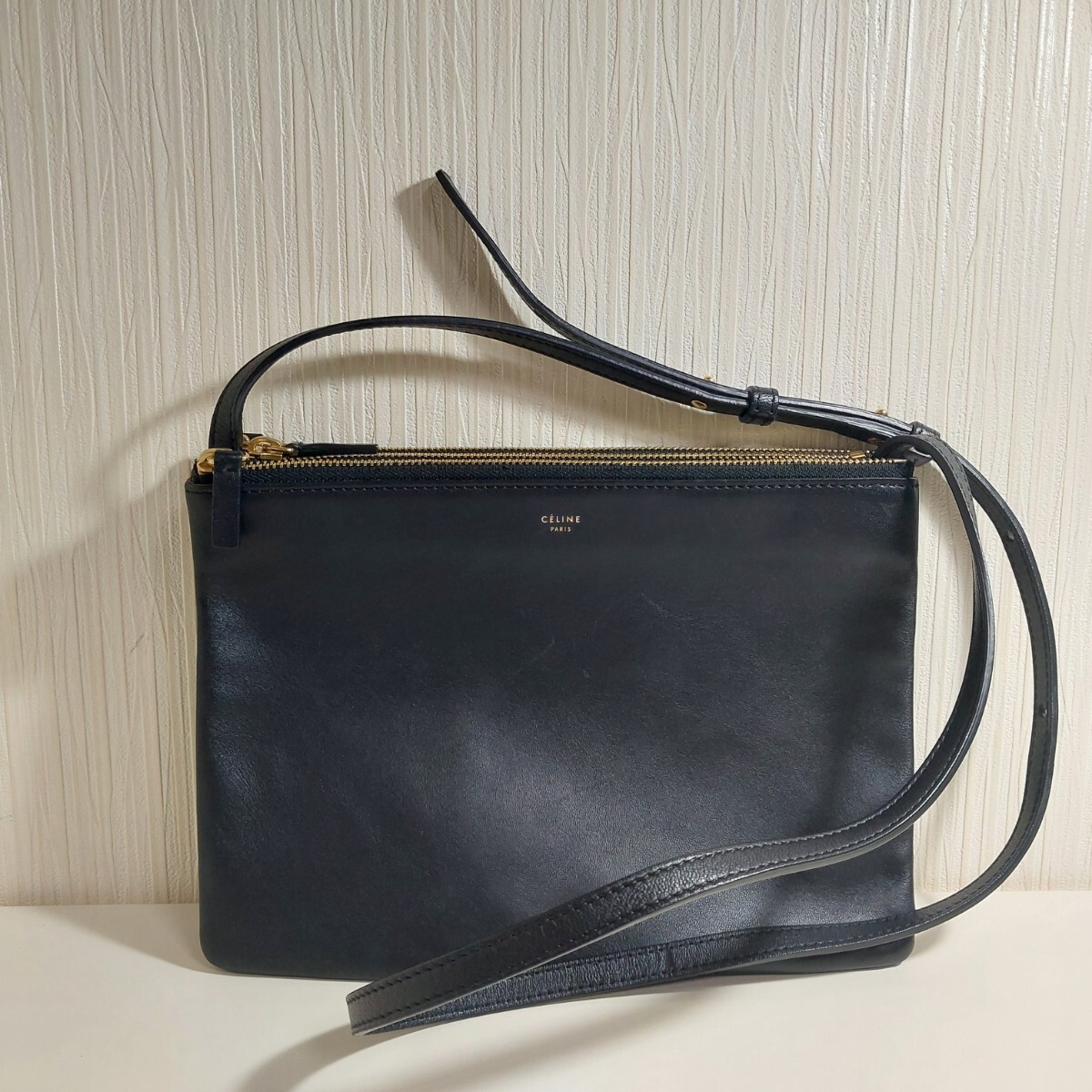 - セリーヌ トリオ ラージ クロスボディ ショルダーバッグ レザー ブラック 171453