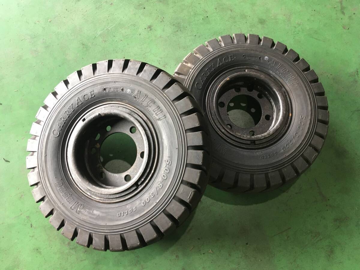 - s918-4-11B ☆5.00-8(ノーパンク) アイチ MB320 バッテリー車に♪ 未使用品 2本セット リング式 ホイール付き! k50