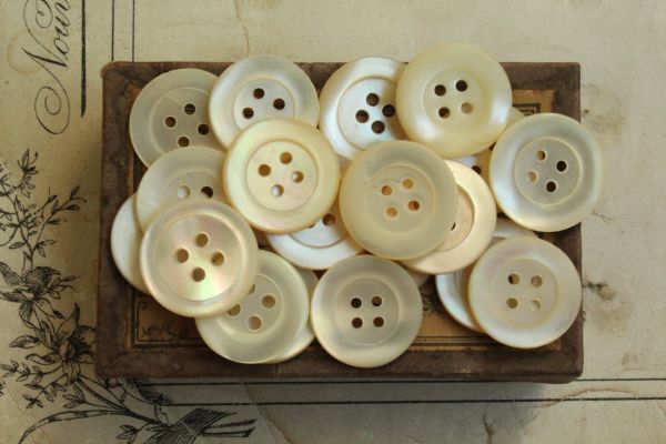 - 即決 4穴 シェルボタン 20個 φ17 & 18mm アソート 貝ボタン ヴィンテージ 素材 ハンドメイドパーツ フランス輸入 e