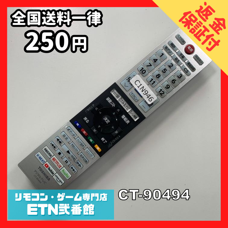 C1N946 【送料250円】 TV リモコン / TOSHIBA 東芝 CT-90494 動作確認済み★即発送★ テレビ *拍卖