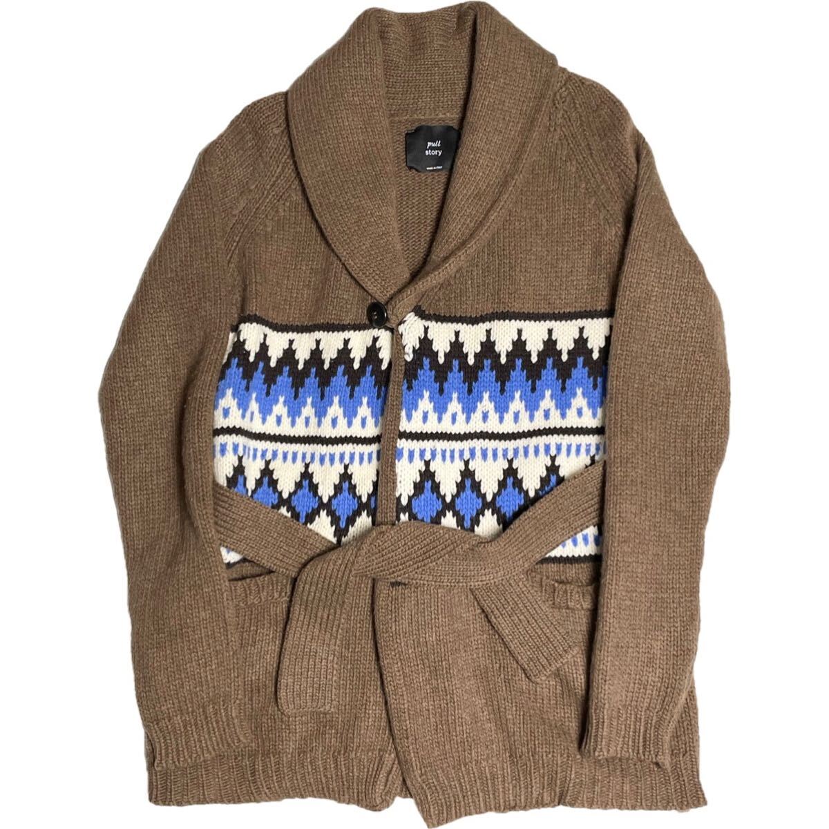 > MADE IN ITALY製 pull story ベルト付きショールカラーウールニットカーディガン ブラウン Sサイズ プルストーリー イタリア製