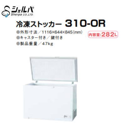 - 新品 シェルパ 冷凍ストッカー 310-OR / 282L【送料別途見積】