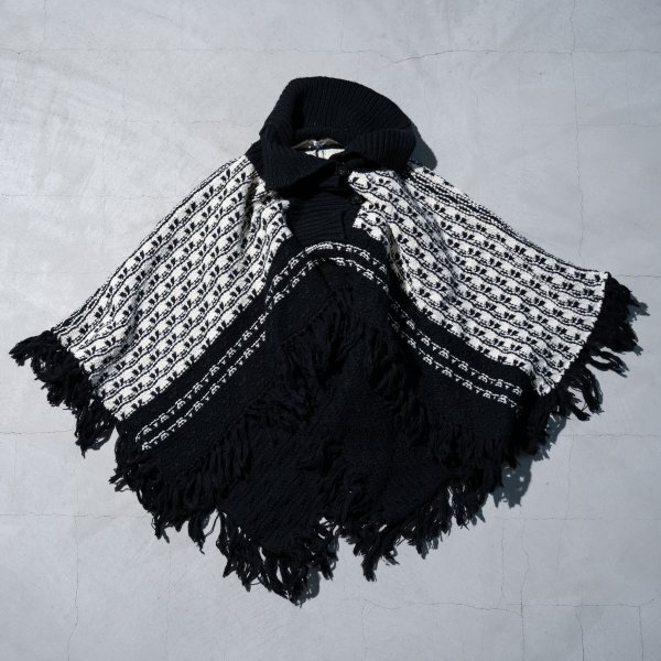 > ルシェルブルー フリンジ ポンチョ ウール フリーサイズ