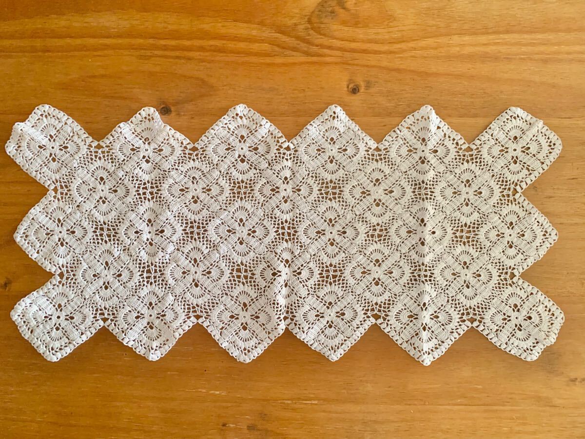 > 送料込 ドイリー パイナップル レース編み 33㎝×70㎝ テーブルセンター 花 白 ハンドメイド レトロ アンティーク