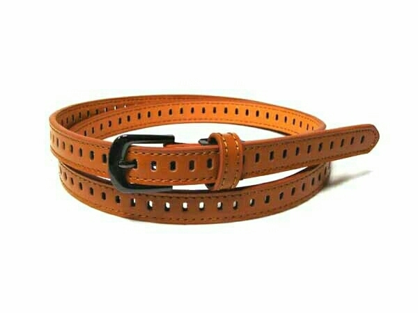 - 牛革使用 エンドレスピンホール スリム レザー ベルト キャメル ピンバックル フリーサイズ 【 新品未使用 】 ◆ アウトレット ◆
