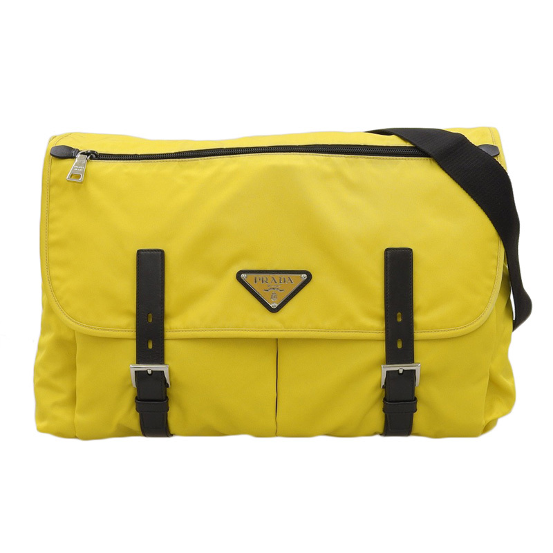 - プラダ PRADA ショルダーバッグ 斜め掛けショルダー ナイロン/レザー イエロー/ブラック 中古 新入荷 OB2194