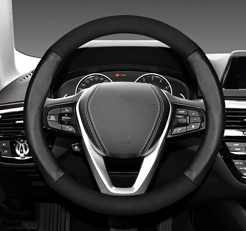 - ハンドルカバー 3~5シリーズ X1~6 M2~4 7シリーズ スエード+牛革製 ステアリングカバー 滑り止め 内装パーツ 38CMlf-209