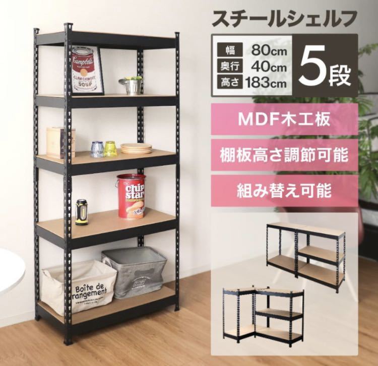 - スチールラック メタルラック メタルシェルフ スチールシェルフ 収納ラック 5段 横幅80cm