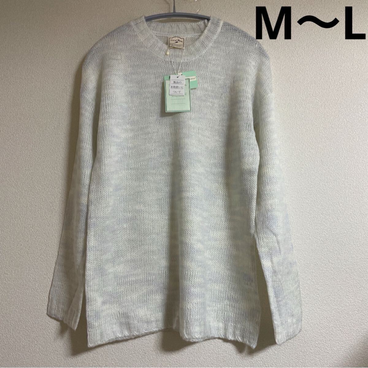 - 新品 3190円 ミックス ニット プルオーバー オフホワイト M〜L タグ付き 未使用 長袖