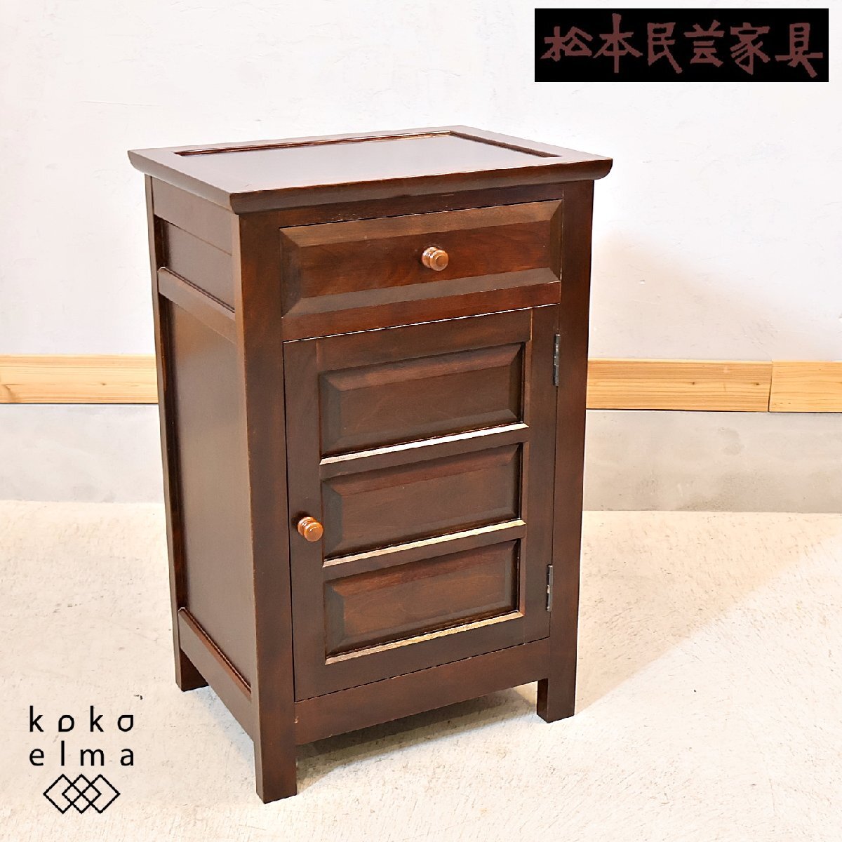 > 松本民芸家具 ミズメザクラ無垢材 C型電話台 キャビネット ヴィンテージ 天然木 クラシック 和モダン アンティーク調 高級家具 EL122