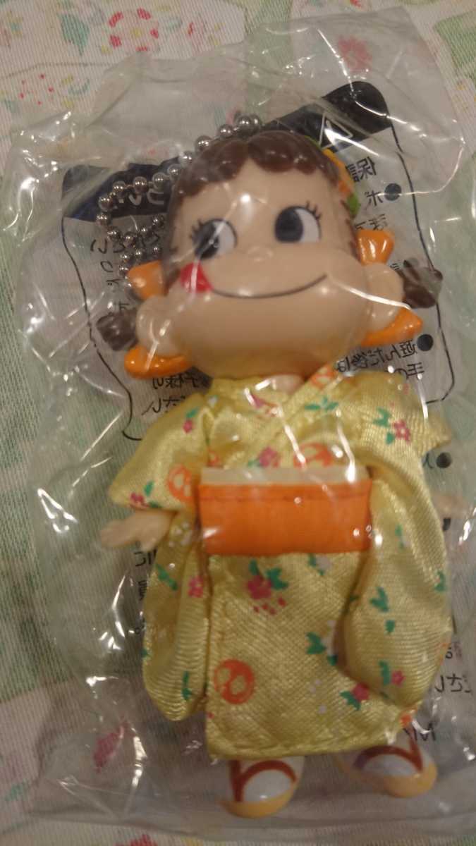 - 不二家・ペコちゃんマスコットキーホルダー 着物 黄