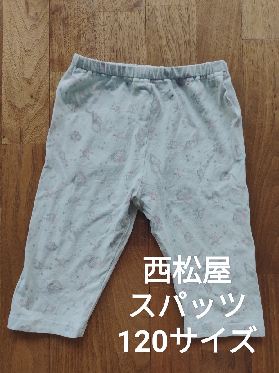 - 西松屋 キッズ スパッツ ズボン 貝殻柄 ブルー 120
