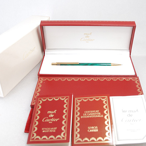 > カルティエ マストドゥ パンテール グリーンマーブル ツイスト式 ボールペン 青インク ST150046 筆記確認済み(15662)