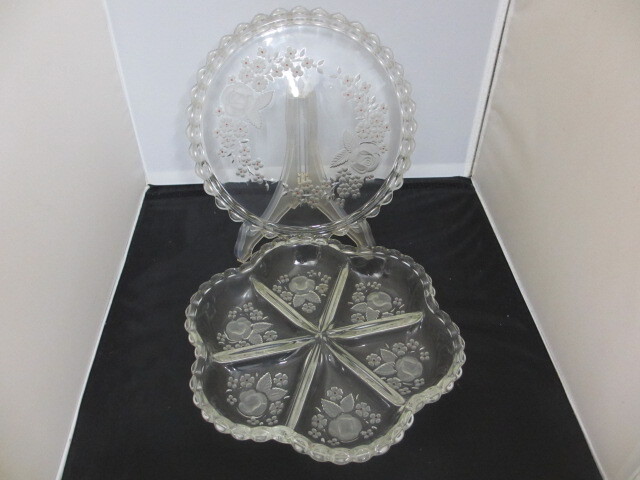 - 洋食器 ガラス製 オードブル皿+プレート皿セット