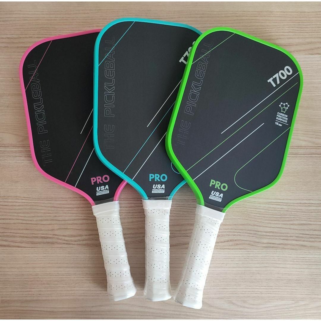 - 3個セット ピックルボール パドル T700生カーボン 緑色 青 ピンク 16mm