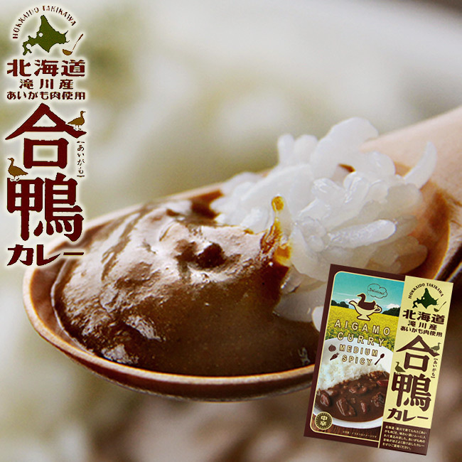 - 合鴨カレー180g×2個セット(中辛)北海道滝川産あいがも肉を味わい深いルーに入れて煮込みました(レトルトカレー アイガモ ご当地カレー