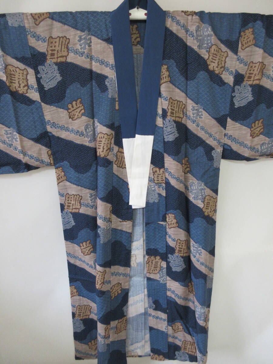 - 46-3 紳士 長襦袢 紺 縁起文字 福 鶴 盛 龍 祭 壽 和装 身丈約137㎝