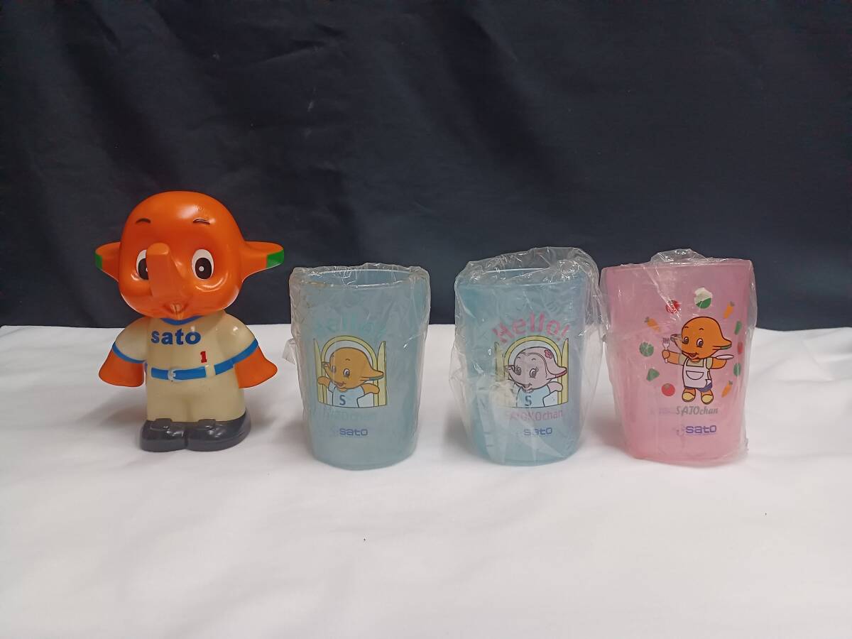 - ユニフォーム サトちゃん 貯金箱 プラスチック製コップ3点の4点セット ノベルティ貯金