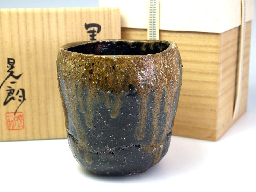 > ■真作保証■【伊勢崎晃一朗】作 黒茶碗 共箱■父:人間国宝 伊勢崎淳■師:ジェフ シャピロ■