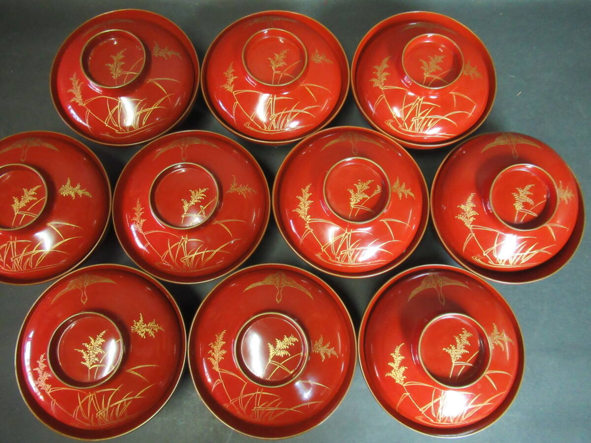 - 【広吉堂】輪島塗 吸物椀 漆器 木製 蒔絵 時代物 美品 10客(K612L)
