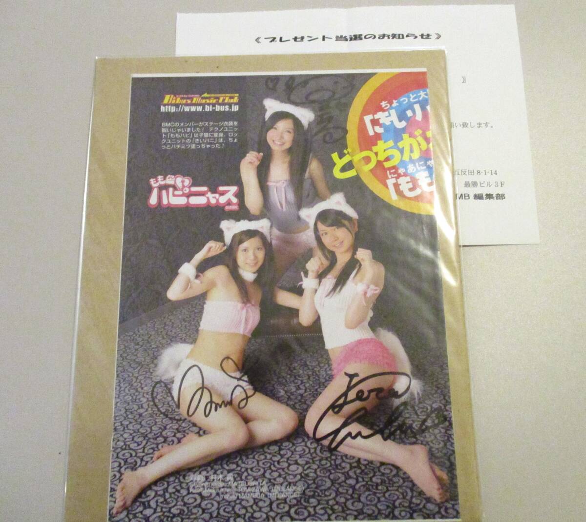 - もも色ハピニャス@BMC 早美あい、小川愛美、寺田ちひろ 直筆サイン入り切り抜き 当選非売品