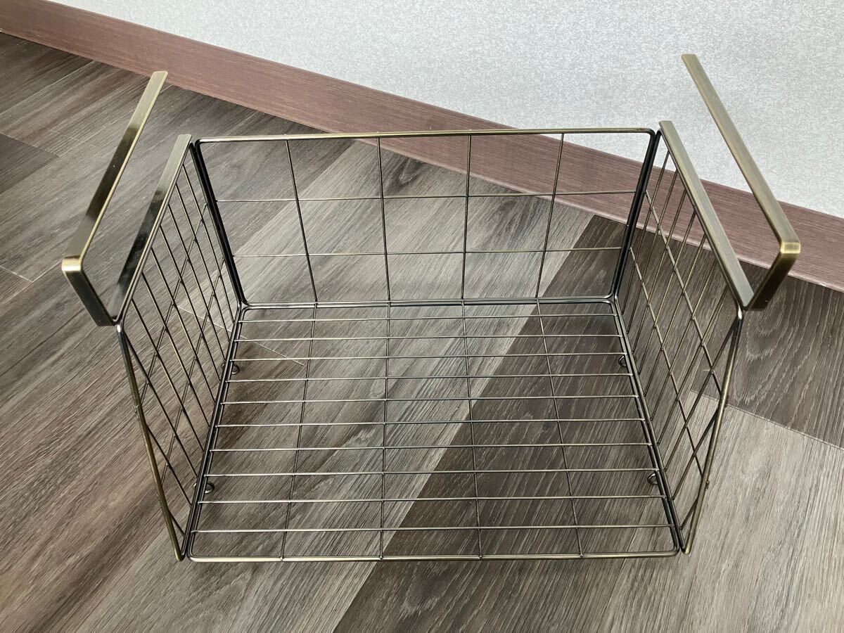 - 吊り下げ収納 ハンギングバスケット アンティークゴールド 吊り戸棚 キッチン収納 洗面所収納 棚下収納 収納ラック 差し込み